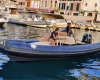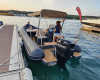 The BWA 26 GT comes with a large bimini top and a large bow sundeck. There are many little things that make up this semi-rigid, whose charm lies, among others, in the discreet elegance of its lines. The aft area can also be converted into a second sundeck by adjusting the height of the table.