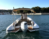 Il BWA 26 GT è dotato di un grande bimini top e un ampio prendisole di prua. Sono tante le piccole cose che compongono questo semirigido, il cui fascino risiede, tra l’altro, nella discreta eleganza delle sue linee. La zona di poppa può anche essere trasformata in un secondo prendisole regolando l’altezza del tavolo.